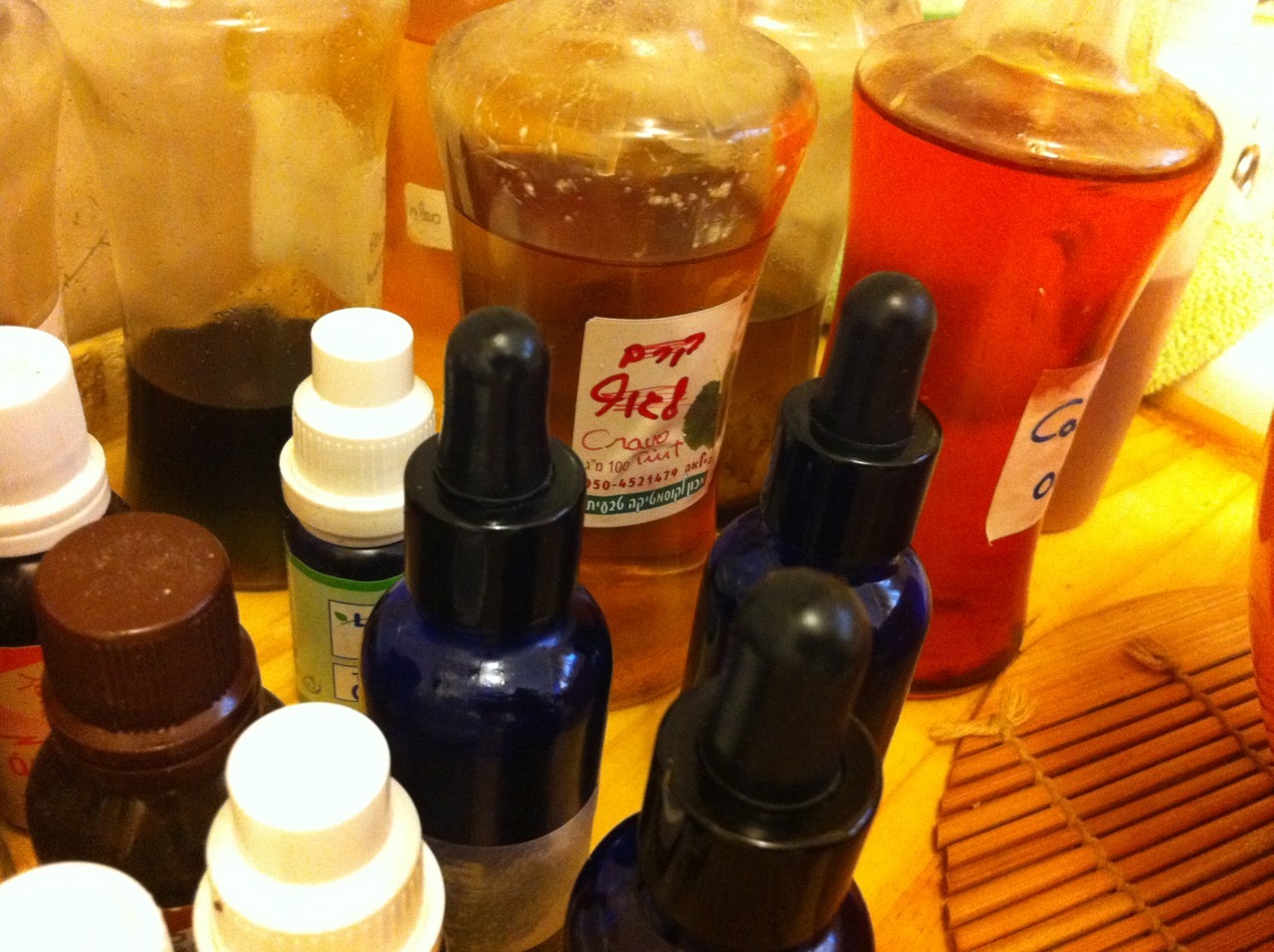 אני בוחנת את הצנצנות המלאות באבקות וצמחים, הילאה מסבירה לי בסבלנות ואני מתפעלת –