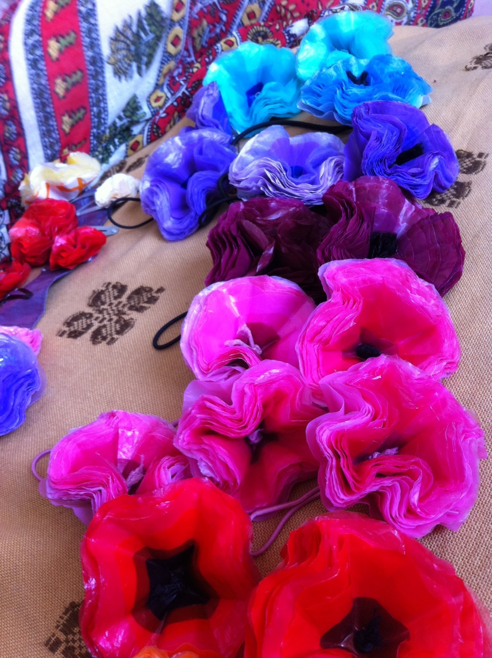 את הפרחים רומי יוצרת ממחזור שקיות ניילון, שהיא מוצאת והם אלו שבעצם שקבעו את מהלך חייה ב – 10 שנים האחרונות. השיא של הסיפור שהפרחים אפשרו לרומי להביא ילדה לעולם.
