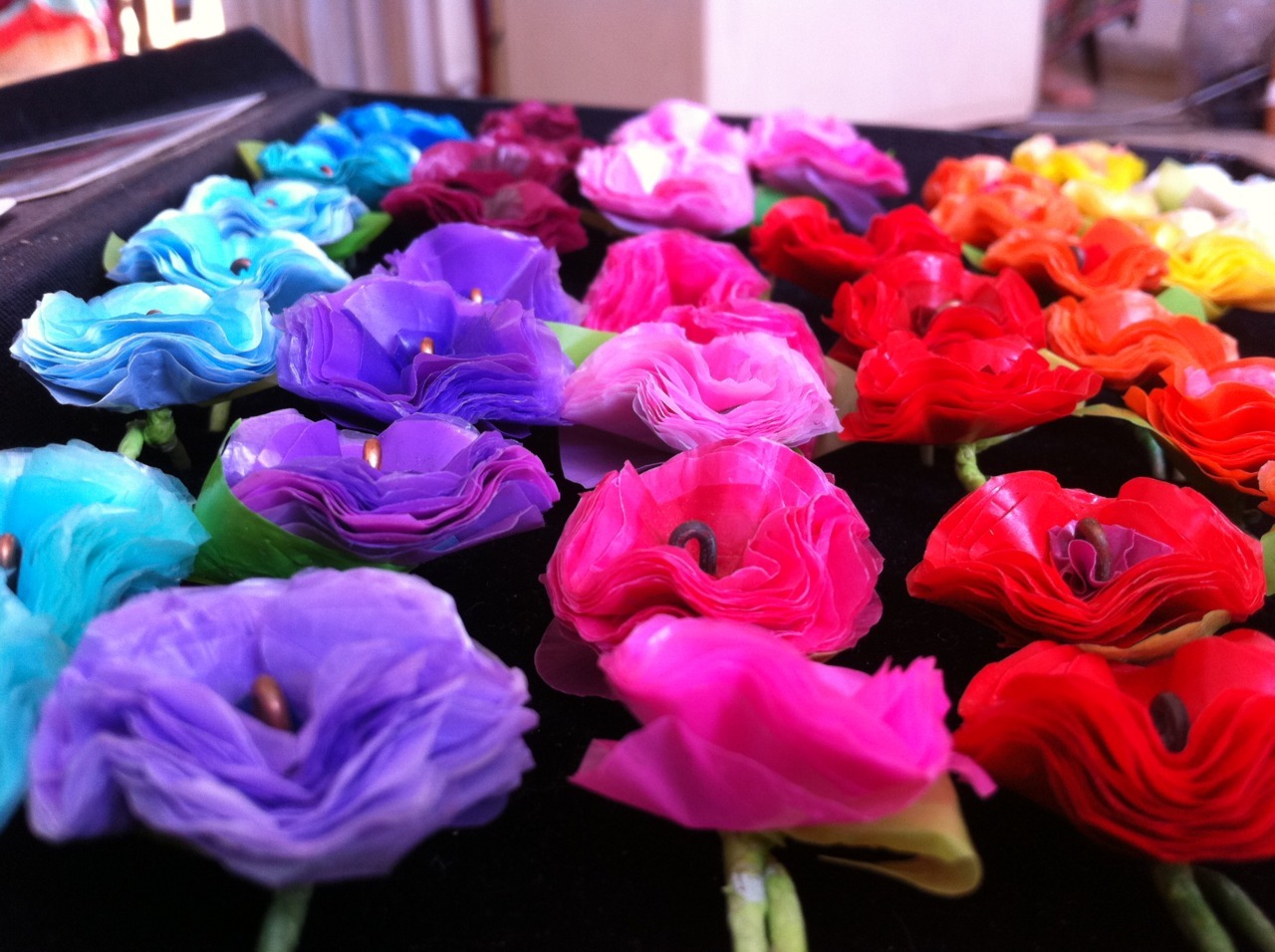ימים שלמים ישבתי מהבוקר, עד שנגמר לי הכח והפכתי שקיות שאספתי לפרחים. אחר כך חילקתי אותם מתנה בכל מיני בתי קפה, מסעדות, בצירוף של פתק עם ברכה קטנה.